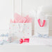 Gift beautifully. Celebrate any occasion with this Gift Bag Set from Sugar Paper™. This set of gift bags includes two bags in two sizes to accommodate your birthday gifting needs. The corresponding set includes a colorful dot pattern with happy birthday messaging on the larger of the two bags. Each bag has Neon Pink grosgrain ribbon handles. Add some Sugar Paper for Target tissue paper to complete the look.