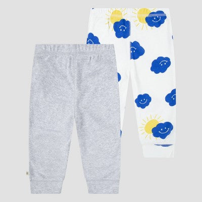 Huggies Baby Boys' 2pk Cloud Organic Pants - Blue/White/Yellow 9M