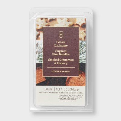 View full details12ct Cozy Wax Melt 2.4oz Cookie Exchange Sugared Pine Needles Smoked Cinnamon and Hickory - Threshold