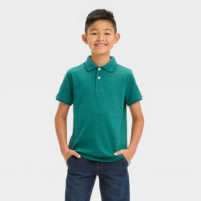 Cat & Jack Dark Green: Pique FabricYour child will be ready for whatever the day brings in this Short-Sleeve Heather Polo T-Shirt from Cat &...