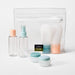 Make all your travels convenient with this 7-Piece Toiletry Bag Set from Open Story™. This clear toiletry set includes a bottle, a spray bottle, two pouches, and two jars to safely store your shampoo, conditioner, face wash, and more. Plus, the toiletry set comes in a transparent zipper pouch for easy packing when headed to your next vacation, business trip or fun weekend getaway.