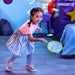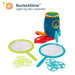 Blast off to flyin' fun with RocketGlow from B. toys! Start the countdown to active play with an out-of-this-world flying disc launcher for indoor and outdoor fun. First, load a disc or two into the light-up launcher, then step on the pedal for LIFT-OFF! The discs will soar into the air, and then it's time for active kids to run around and catch the discs with the included catching nets. Enjoy an exciting catch game for the whole family! Great for indoor and outdoor play, this disc launcher also features glow-in-the-dark discs for exciting play even when the fireflies are out! Chasing after and catching the discs will help kids and toddlers improve their hand-eye coordination and keep them physically active. 3 x AAA batteries are required and included. Recommended for kids 4 years and over.