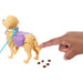 Help Barbie 'Brooklyn' doll walk her dog through the Big City and clean up after it goes potty! Wind the knob on the toy dog and pull back the leash to see it really walk. Push the tail to make puppy go potty, then clean up the pieces with the pooper scooper. With accessories like a leash that fits in doll hands, a food bowl, and a dog treats - kids have everything they need to help Brooklyn care for her pup! Doll cannot stand alone. Colors and decorations may vary.
