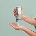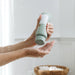 1. After shampooing + rinsing, depending on the thickness of your hair, squeeze a dime to quarter-sized amount of the hydrating hair conditioner into your palm.