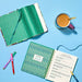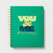 Capture your everyday thoughts and ideas in this "You and Me" Journal from Tabitha Brown for Target. This journal showcases the text "You & Me Business" on a green backdrop on the hard cover, and it's designed with spiral binding to easily flip the pages. With 168 guided pages, it features different sections to jot down notes, to-do lists and more. Plus, a ribbon bookmark helps you easily keep track of where you left off.