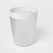 Have your bath space free of clutter with this Frosted Wastebasket from Room Essentialsâ„¢. Crafted with a smooth and sturdy plastic exterior, this white bathroom wastebasket sports a chic, frosted construction and white trim at the rim for a pop of contrast. Designed with a sleek, tapering silhouette and a wide rim, this round wastebasket fits neatly into compact spaces while corralling trash away neatly. Place in your bathroom with coordinating bath accessories for a tied-together look.
