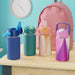 Let kids hydrate in style with this 16-ounce straw bottle! The folding straw makes sipping easy and won’t leak when it's closed, and the silicone sleeve protects the bottle from impact and reduces noise. A wide carrying handle adds grab-and-go convenience, making it perfect for school and activities. Made of durable, BPA-free plastic, this stylish bottle is top rack dishwasher safe for quick and easy cleanup—the perfect everyday hydration essential!
