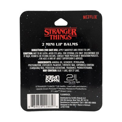 Stranger ThingsGet ready to turn your world upside down with the Stranger Things Mini Flavored Lip Balm 2 Pack! Inspired by the hit Netflix series, this collectib...