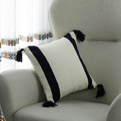 View full detailsDEERLUX 16" Handwoven Cotton Throw Pillow Cover with Side Stripes, Black