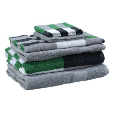 6pc Bath Towel Set Green/Gray/Black Striped - Kapoor Home
