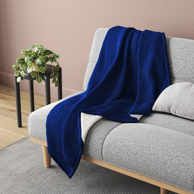 View full detailsQuilted Jersey Throw Blanket with Faux Shearling Reverse Heathered Cobalt Blue - Room Essentials