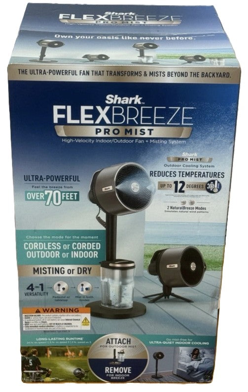 SharkThe Shark FlexBreeze Pro Mist fan is ultra-powerful with a 70 ft reach, with portable misting and whisper-quiet performance. Use it as a tabletop o...