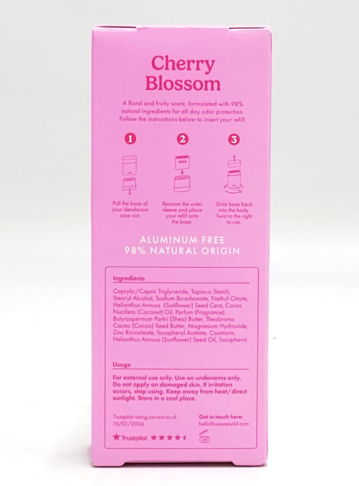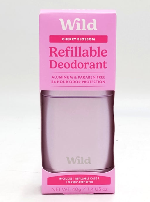 Wild CosmeticsWild Refillable Deodorant Starter Pack, with Purple Case + Cherry Blossom refill.Refillable deodorant, powered by nature. Wild deo is packed with 9...