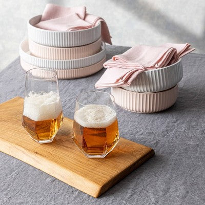 over&backAdd a touch of modern flair to your table with this mouth-blown glassware featuring a unique facet design. The bold, colorful glass will make any o...