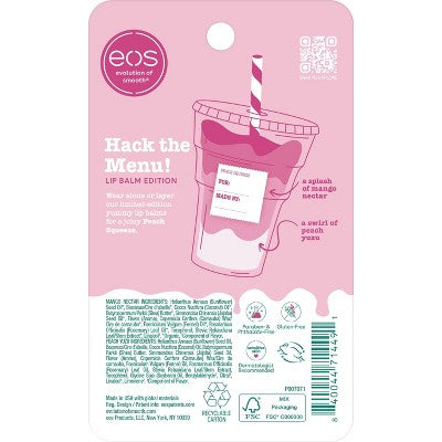 eosIntroducing new, limited-edition #eosflavorlab Secret Menu - a drink-inspired lip balm collection! This refreshing Peach Squeeze duo features Mango...