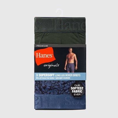 View full detailsHanes Originals Premium Men's SuperSoft Long Leg Boxer Briefs 3pk - Blue/Green/Gray M: Tagless, Moisture Wicking, Stretch Knit Fabric