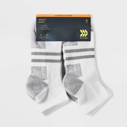 View full detailsMen's Training 8pk Ankle Socks - All in Motion White 6-12