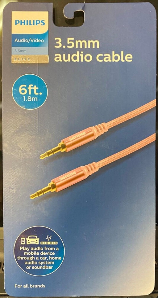 View full detailsPhilips Auxiliary Cable 3.5mm Elite 6ft Rose Gold