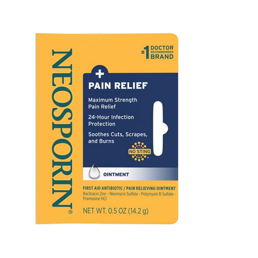 NeosporinNeosporin + Pain Relief Dual Action Antibiotic Ointment provides 24-hour infection protection and helps soothe painful minor cuts, scrapes, and bur...