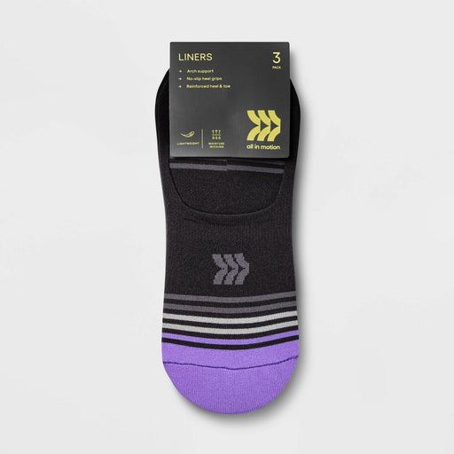 View full detailsWomen's Lightweight Striped 3pk Liner Athletic Socks - All in Motion& - Black 4-10