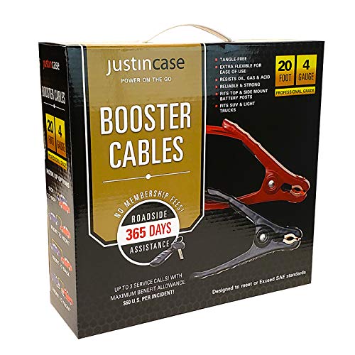 View full detailsJustin Case Jumper Cables 4 Gauge 20 Feet with 365 days of Roadside Assistance – Professional Grade Car Emergency Booster Cables SAE