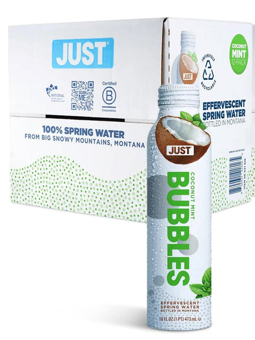 View full detailsJUST Bubbles Coconut Mint - Pure Premium Sparkling Spring Water In A Fully Recyclable Reusable Eco-Friendly Bottle - 100% Mountain-Sourced Carbonated Water With Naturally Occurring Minerals, 16 Fl Oz (Pack Of 12)