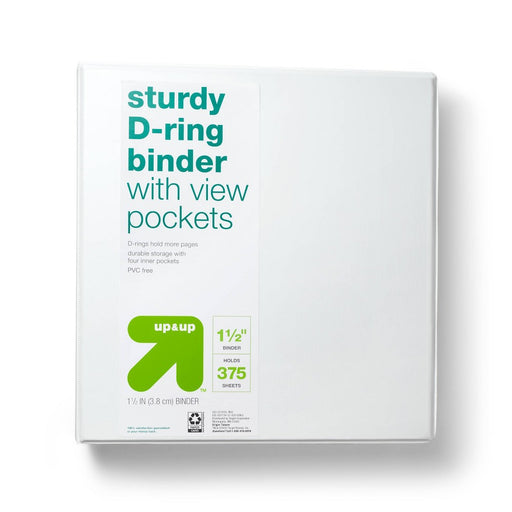 up & upKeep it all together with the Clear View Durable Ring Binder from up & up™ This smartly designed D-ring binder can hold more pages than a tradi...