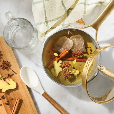 View full details1.5qt Nonstick Ceramic Coated Aluminum Sauce Pan with Champagne Handle Cream - Figmint