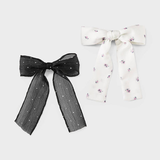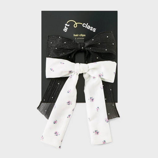 View full detailsGirls' 2pk Floral Printed Ribbon Bow Clip Set - art class Black/White