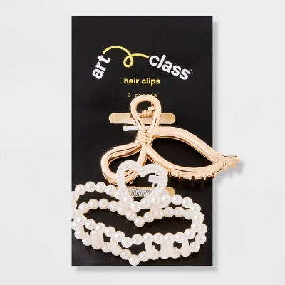 Art ClassEnhance your kid's style with the Girls' 2pk Heart and Bow Claw Clip Set from art class™. These gold and pearl clips, featuring adorable heart and ...