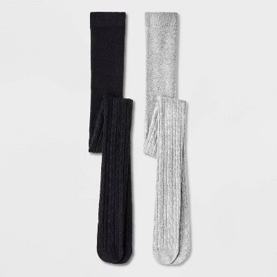 View full detailsGirls' 2pk Cotton Tights - Cat & Jack Black/Gray S