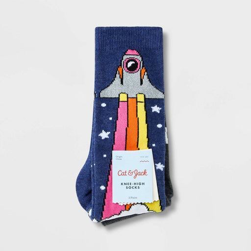 Cat & JackShe'll be ready to take on the day in style with these 2pk Knee High Rocketship Socks from Cat & Jack. Crafted from soft, lightweight fabric wi...