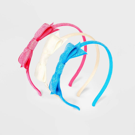 View full detailsGirls' 3pk Glitter Bow Headbands - Cat & Jack Blue/White/Pink