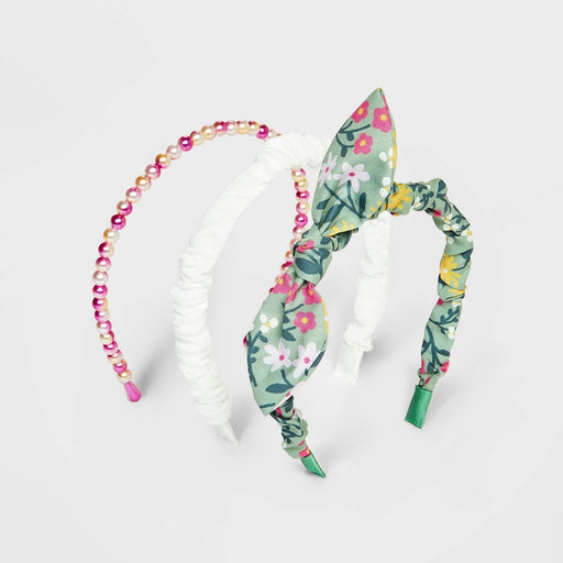 Girls' 3pk Beaded Floral Ruched Headbands - Cat & Jack