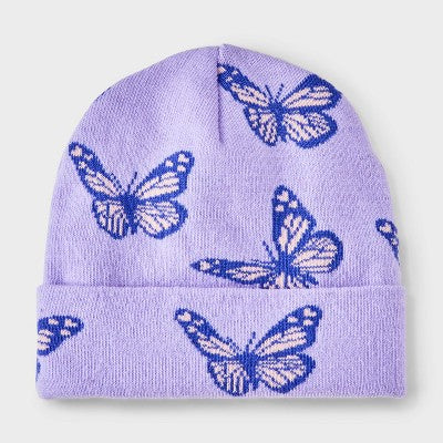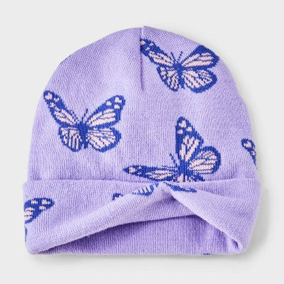 View full detailsGirls' Flat Knit Butterfly Intarsia Beanie Hat - Cat & Jack Lavender 4-14