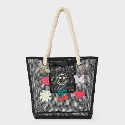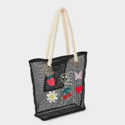 View full detailsGirls' Mesh with Icons Swim Tote - art class Black: Softside Handbag, Double Handle, Fruit & Animal Patterns