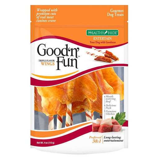 View full detailsGood 'n' Fun Triple Flavor Wings Rawhide Beef, Chicken and Pork Flavor Dog Treats - 4oz