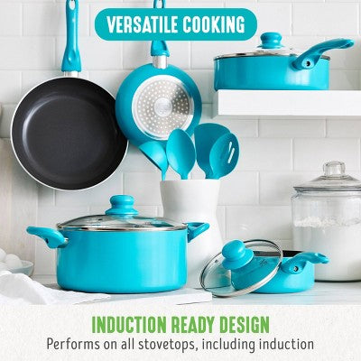 View full detailsGreenLife Essentials 12pc Ceramic Nonstick Aluminum Cookware Set Caribbean Blue: Induction Compatible, Dishwasher-Safe