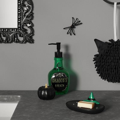 Hyde and EEK! BoutiqueLet your bathroom decor show your excitement for Halloween with the Halloween "Dragon's Breath" Glass Potion Soap Dispenser from Hyde and EEK! Bout...