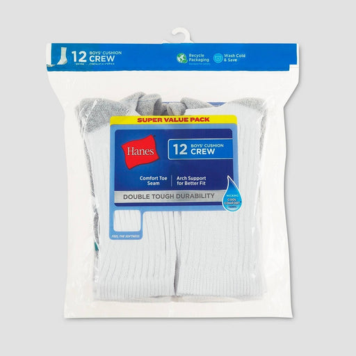 View full detailsHanes Boys' 12pk Cushioned Crew Athletic Socks - White S
