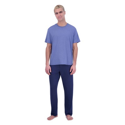 Hanes Originals Men's 2pc Luxe Sleep Pajama Set - Heathered Blue/Peacoat M