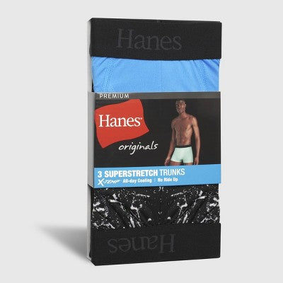 View full detailsHanes Originals Premium Men's Super Stretch Trunks 3pk - Blue/Black L: Tagless, Moisture Wicking, Quick Dry