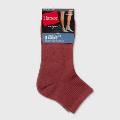 View full detailsHanes Originals Premium Men's SuperSoft Ankle Socks 3pk - Red/Mauve/Gray 6-12: Arch Support, Cushioned Sole