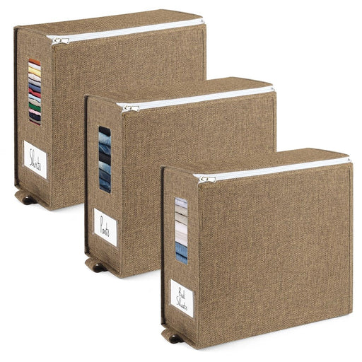 View full detailsHomaisson 3 Pack Bed Sheet Organizers And Storage, Foldable Sheet Set Organizers For Linen Closet, Fabric Storage Bins For Bed Sheets, Duvet Covers, Pillowcases, Clothes (Queen Or King, Coffee)