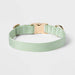 Let your dog prance around in style on your next walk with this Fashion Solid Dog Collar from Boots & Barkley™. It boasts a pretty light green collar made from a textured fabric for an extra chic look that will have your pet looking super stylish. It's accented with a gold buckle and D-ring that allow you to dress your pup hassle-free for their daily walks. Simply clip it closed, adjust the straps to the right fit, attach the leash, and your furry friend is ready to go!
