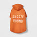Help your pet look as stylish as you are by dressing them in the Orange Snooze Hound Dog Hoodie from Boots & Barkley™. This orange hound dog hoodie features the text "Snooze Hound" at the back for added visual interest. Made with soft fabric, this dog hoodie helps keep them comfortable, and fits nicely over their head and front legs.