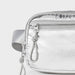 Add a touch of sparkle to any outfit with this stylish fanny pack in a silver color. Perfect for kids and young adults, it features a front zip pocket and adjustable strap for convenience and comfort. The main compartment with a zip closure keeps essentials secure, while multiple interior compartments offer organized storage. Crafted from recycled polyester, this accessory combines functionality with a chic, modern design.