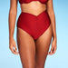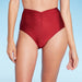 High Waist Shirred Front Bikini Bottom-Shade & Shore Red -XS