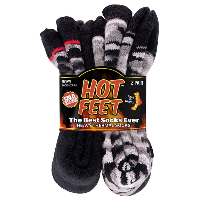 HOT FEET Boys And Girls 2 Pack Heavy Thermal Socks - Traps In Warmth – Kids Thick Insulated Crew For Casual Cold Weather Use (Camo/Black)
