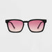 Rectangle-shaped sunglasses designed with UV protection to shield your eyes from harmful sun rays. Feature a full-rim frame in a shiny black finish with shaded red lenses. Lenses have scratch-resistant properties. One size fits most.